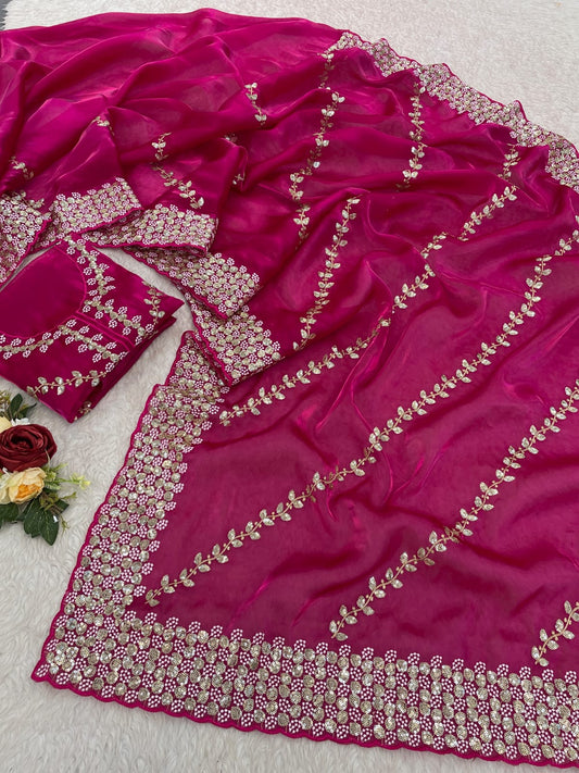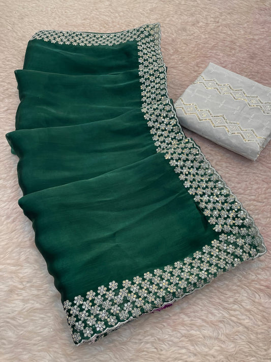 Premium Zimmy Choo satin Saree With Multy Sequence thread work