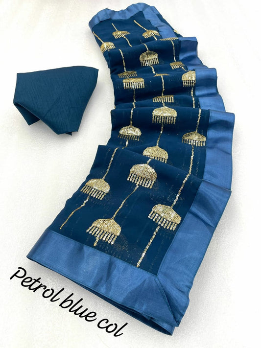 Georgette saree WITH SEQUENCE & Thread WORK WITH ALL OVER & BORDER WITH WORK