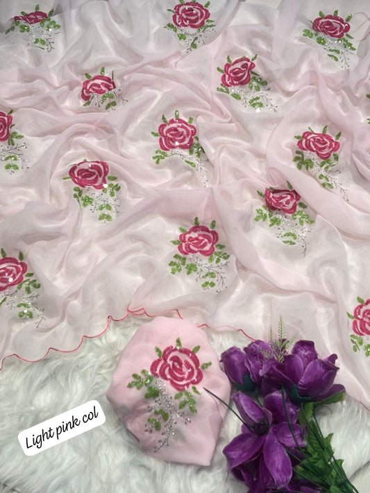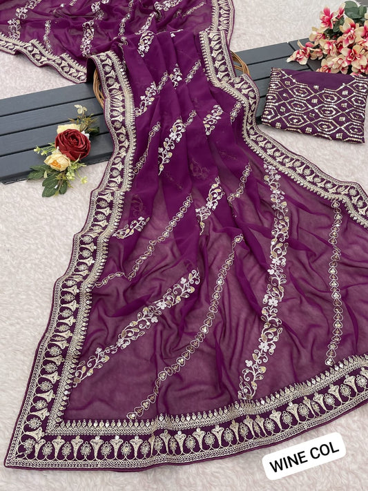 Pure soft GEORGETTE sarees with amazing CODING SEQUENCE ZARI EMBROIEDRY work