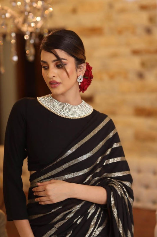Georgette saree with sequence work all over WITH SATIN BORDER