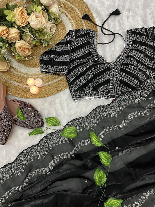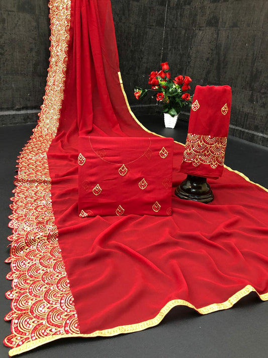 GEORGETTE SAREE WITH SEQUENCE EMBROIDERY WORK Border