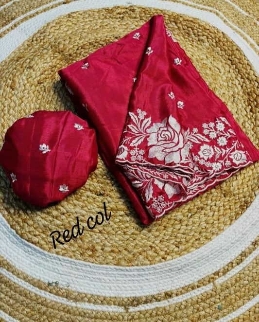 Pure Chinnon Chiffon with white silver zari Embroidery work In Saree