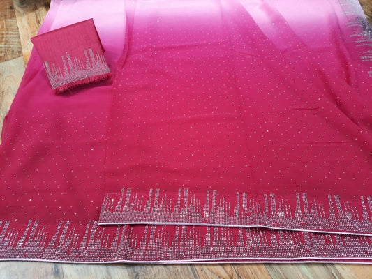 Soft georgette padding saree with beads work all over saree n border WITH BACK SUPPORT LESS