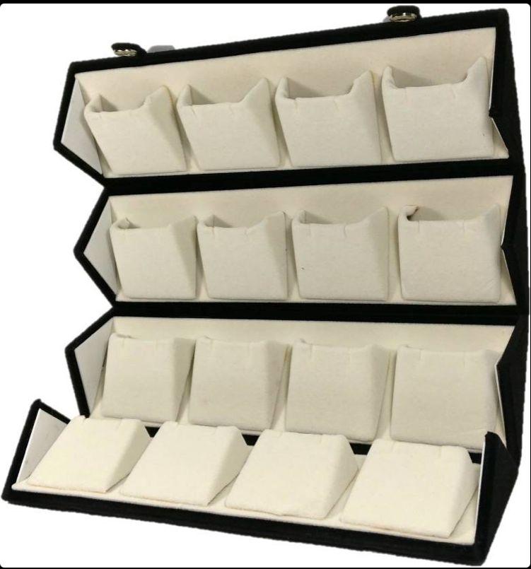 High Quality Velvet Large Earring Studs Tops Velvet Folder 16 Pairs Organizer Jewellery Vanity Box -Black White (Code: J025)