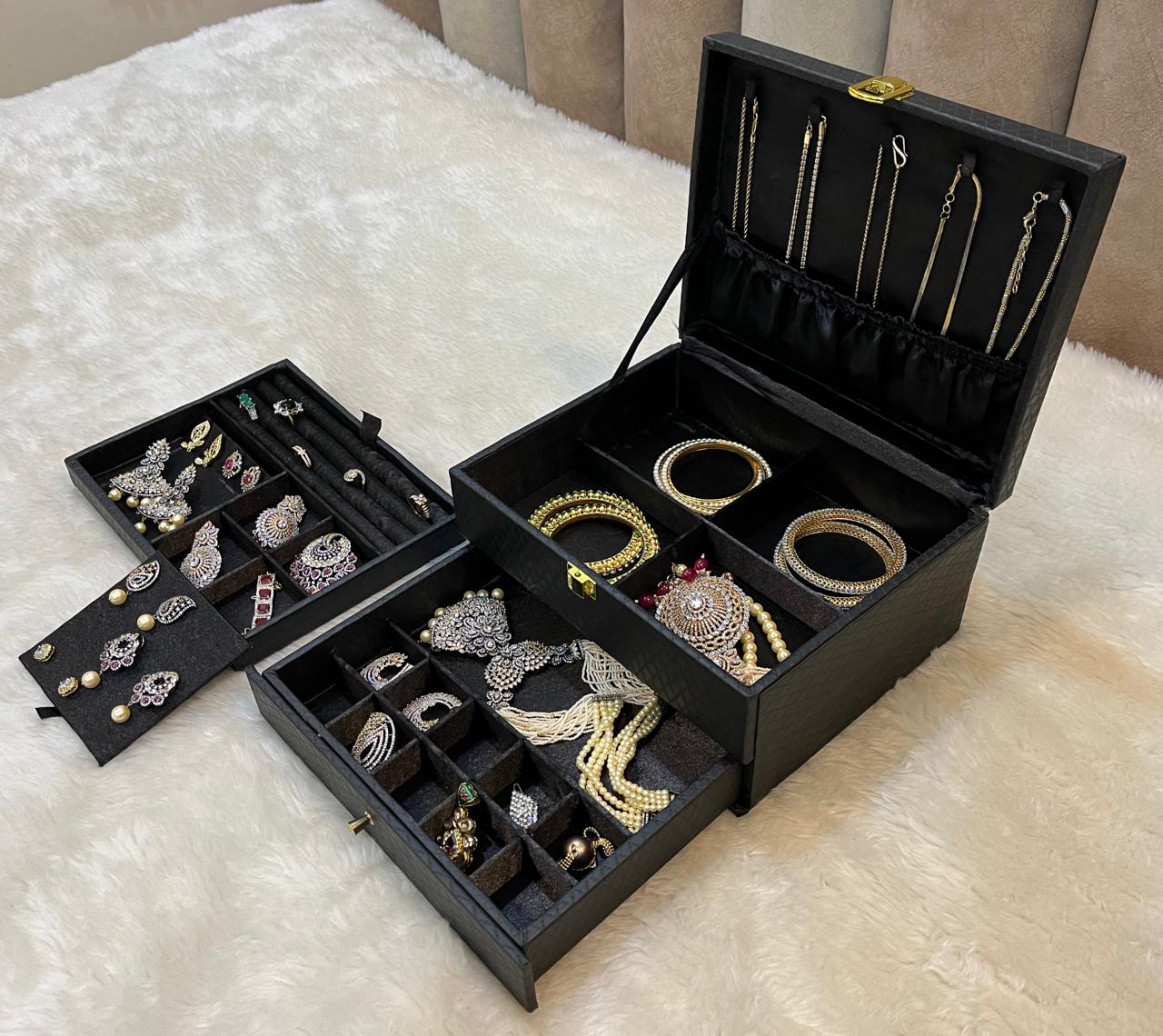Introducing REGALIA, a multi-level jewelry organizer crafted in a premium luxury finish. With its sophisticated design and smart compartment layout, itβs the perfect choice for organizing and protecting your precious accessories in style.