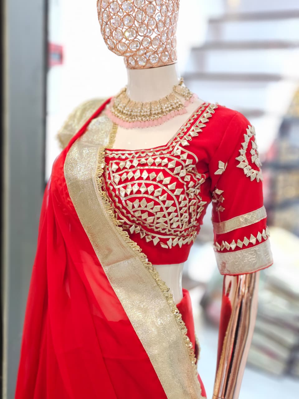 Premium Ankita Lokhande Saree | Hand Charkhi Gotta Patti Work | Fully Stitched Blouse | Soft Georgette Saree