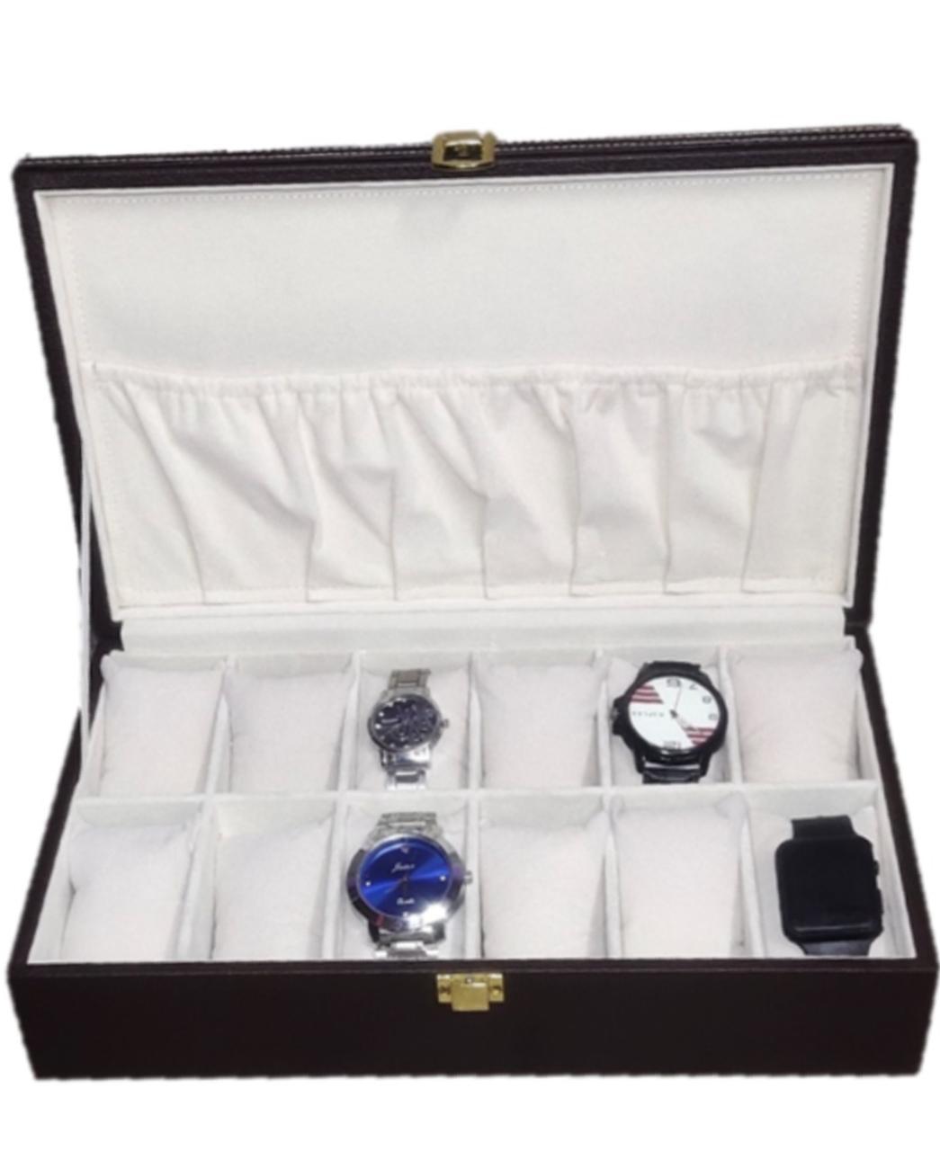 Premium finish stitched 12 slots watch box For keeping 12 watches