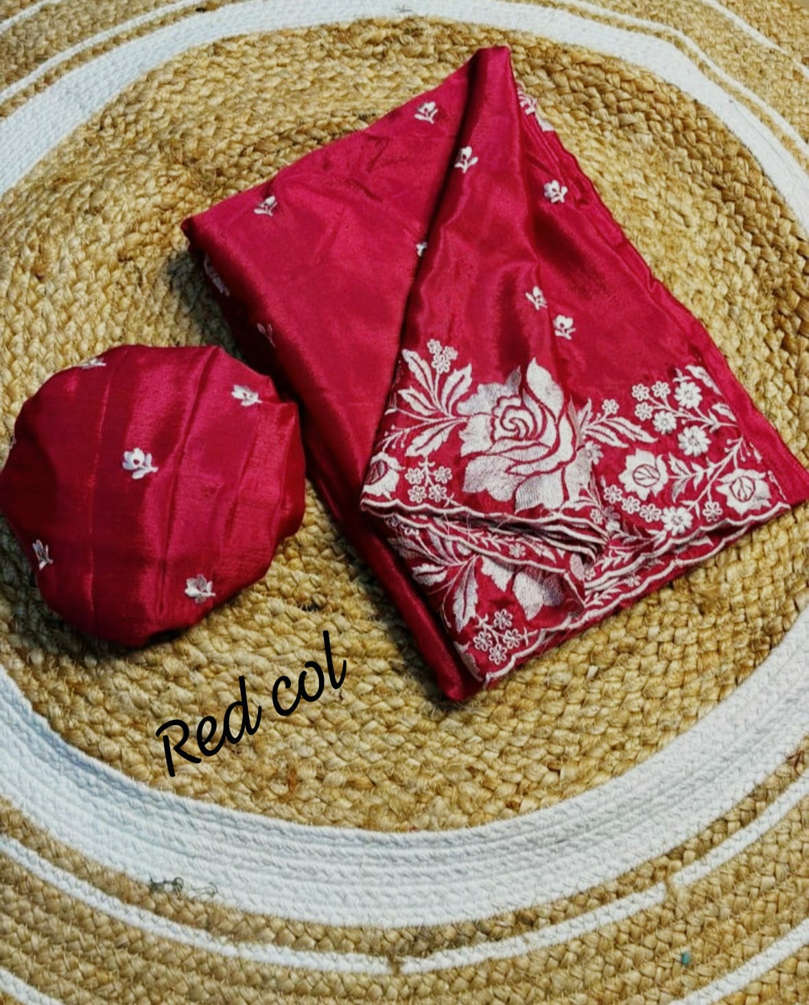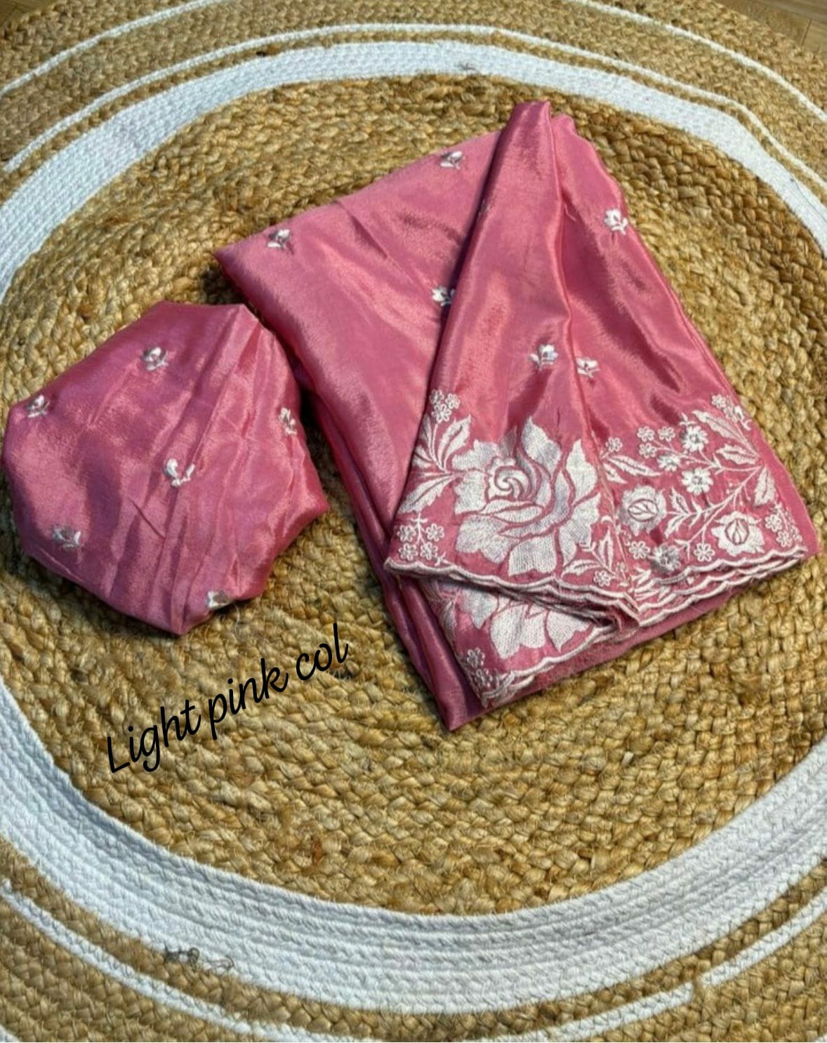 Pure Chinnon Chiffon with white silver zari Embroidery work In Saree