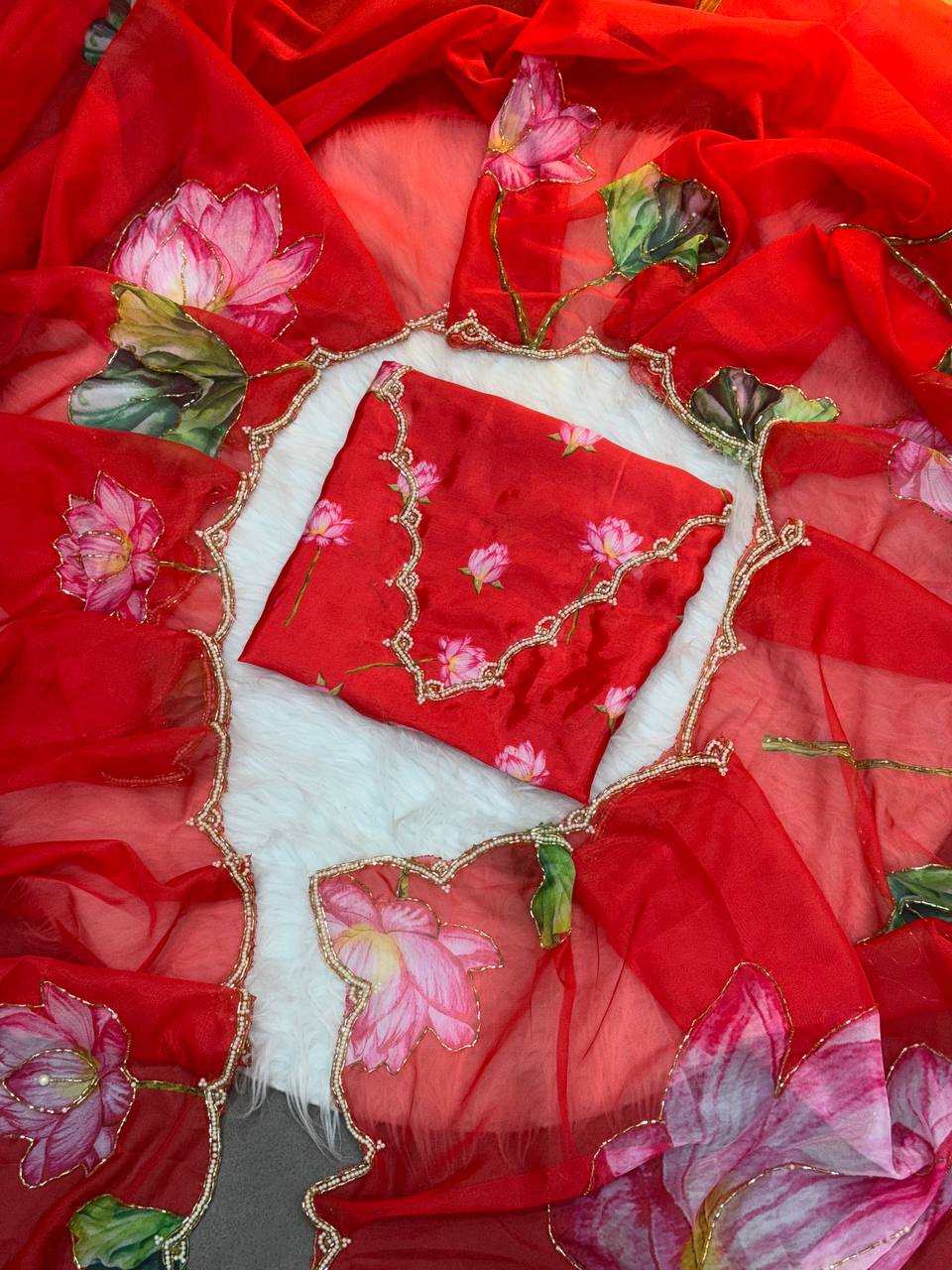 Super Hit Soft Tabi Organza Saree – Celebrity Style Handwork with Cut Dana & Moti Border