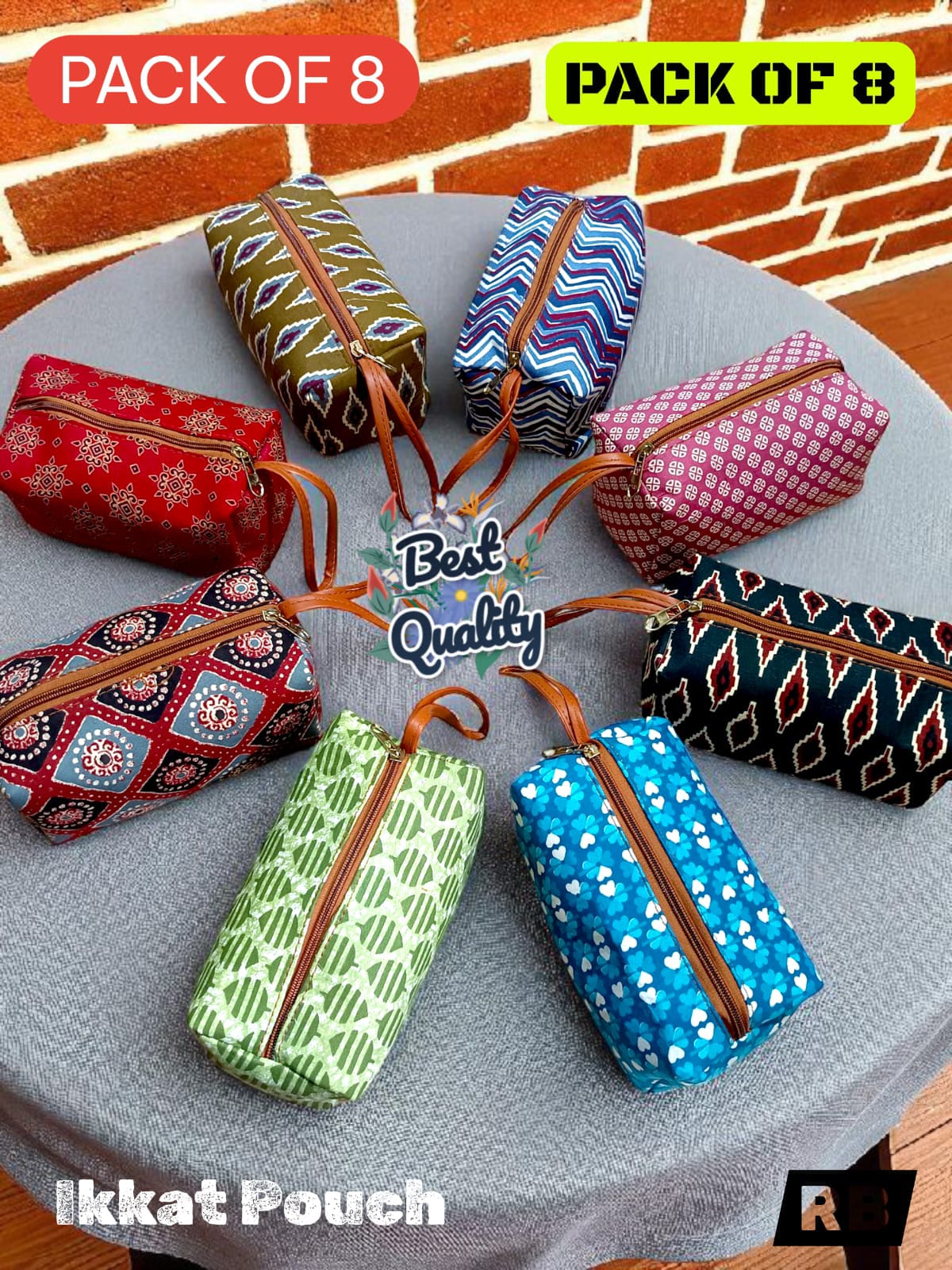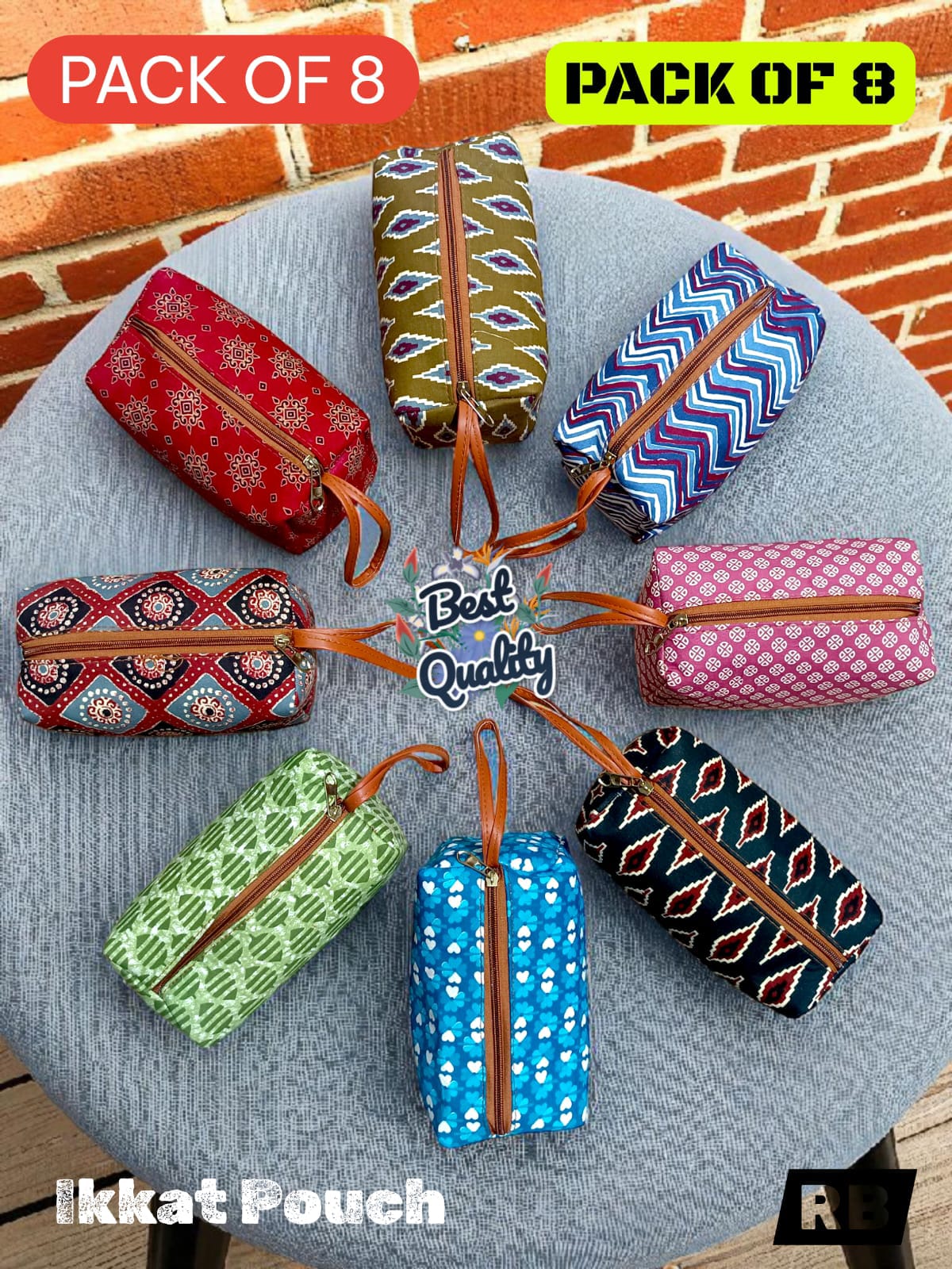 Utility Pouch – Ikkat Cotton Fabric | Travel, Makeup & Return Gifting Organizer ( 8 Pieces )